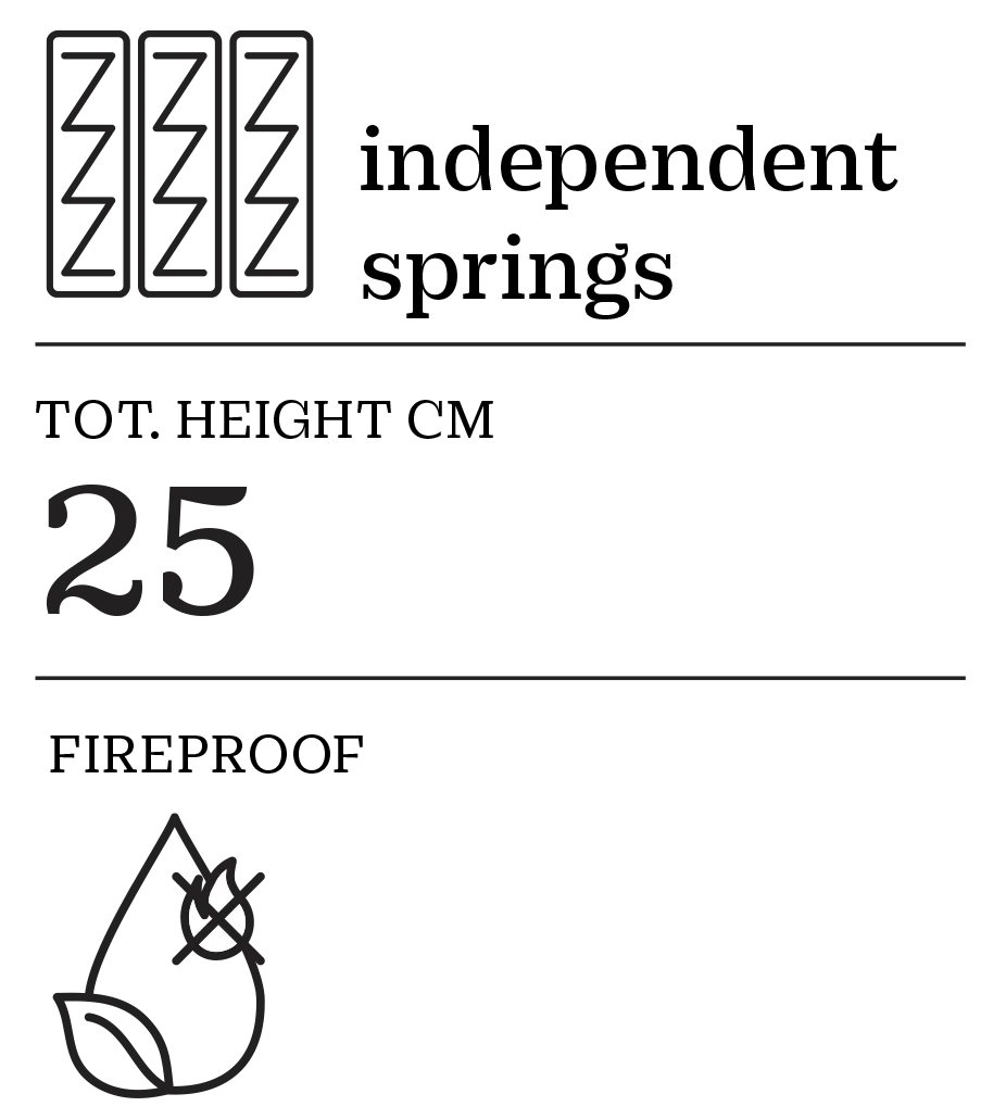 - Independent steel spring structure composed of 307.3 HP coated springs/m2