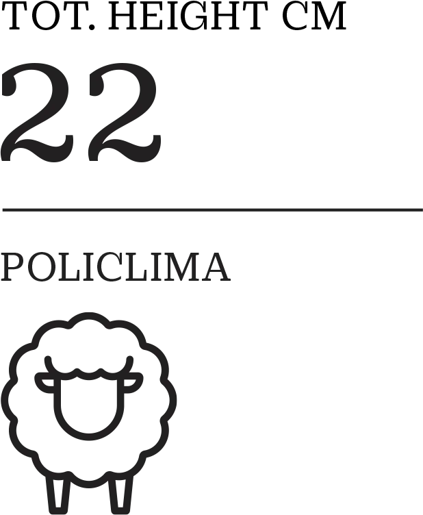 The structure features interconnected Bonnell spring system (400 springs in the double version) made of tempered steel. The fixed cover, in stretch fabric, has climate-controlled padding in PoliClima.