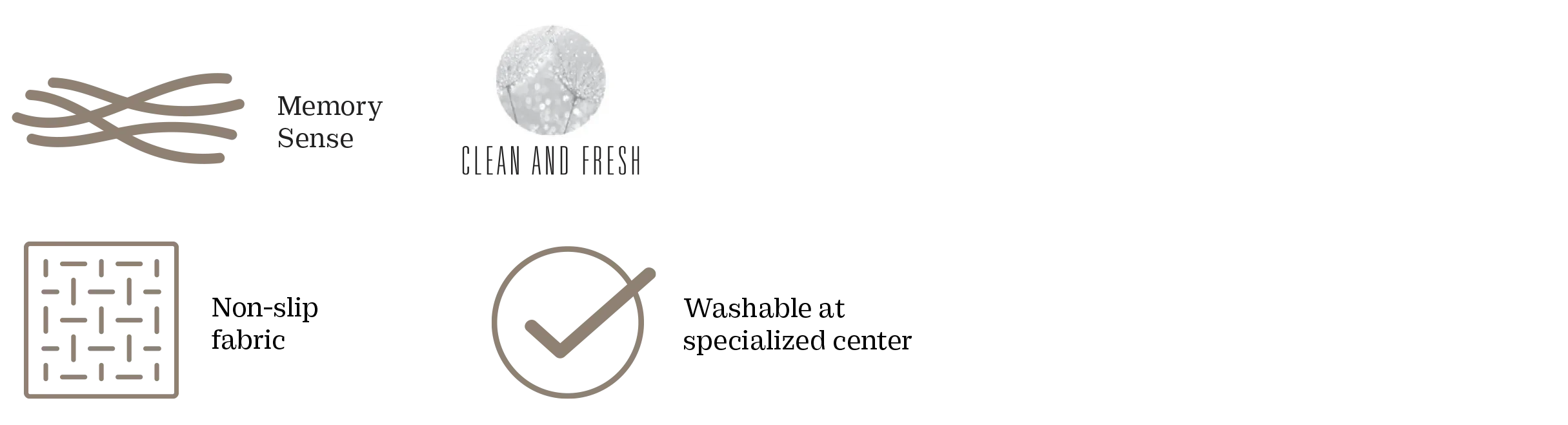 The Sultan Topper, perfectly coordinated with the Harem mattress, increases comfort thanks to its Memory Foam padding, a material that adapts to the body. Finished with a chenille perimeter edge, it features a non-slip fabric that facilitates stable positioning on the sleeping surface.