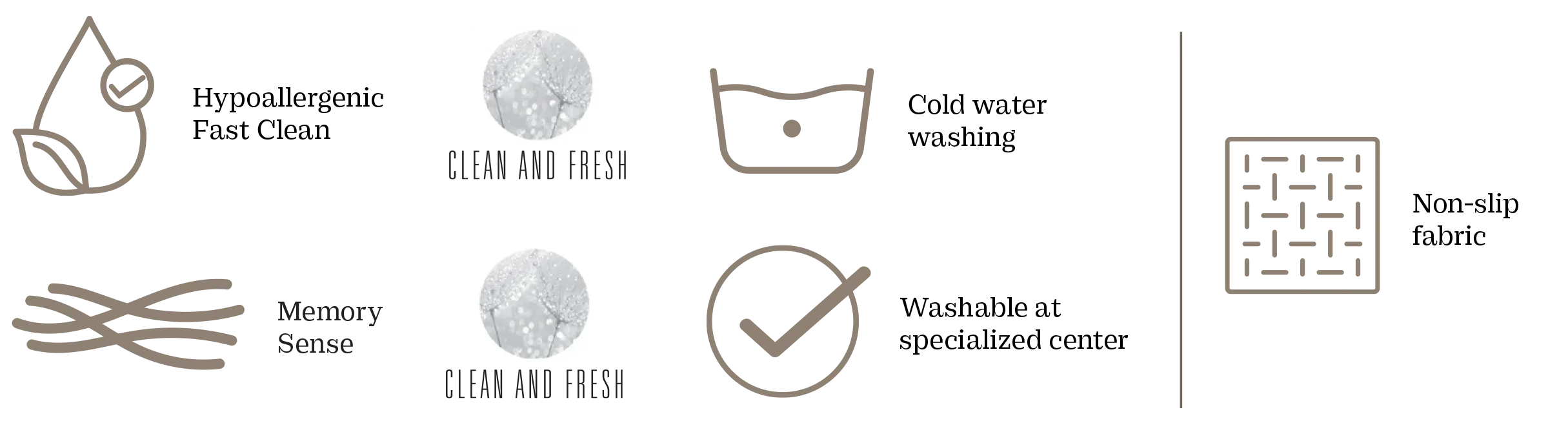 The Time topper features custom-designed quilting and is available with hypoallergenic fiber or Memory Foam padding. It provides a soft and comfortable sleeping surface, designed to enhance sleep quality. The Topper Time also comes with a non-slip fabric that ensures stable placement on the mattress.